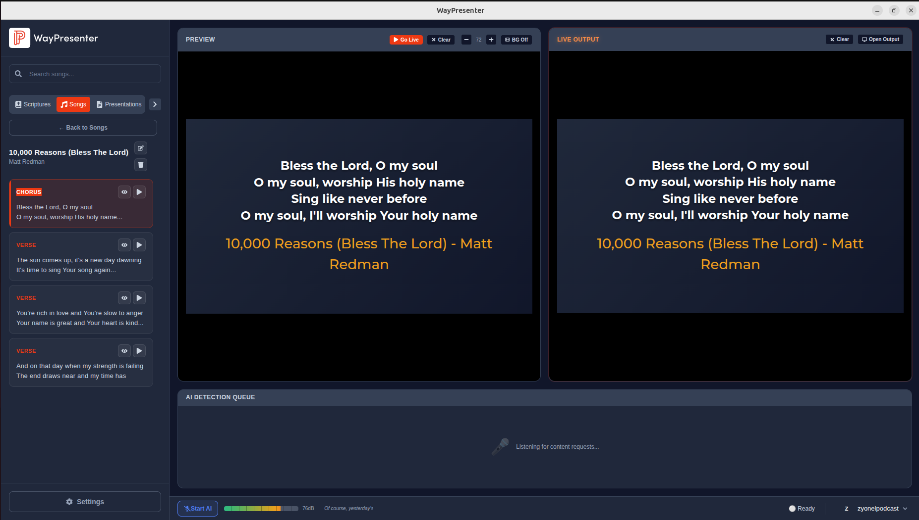 .txt,.docx, or.pptxfiles - WayPresenter will parse the lyrics and detect sections automatically